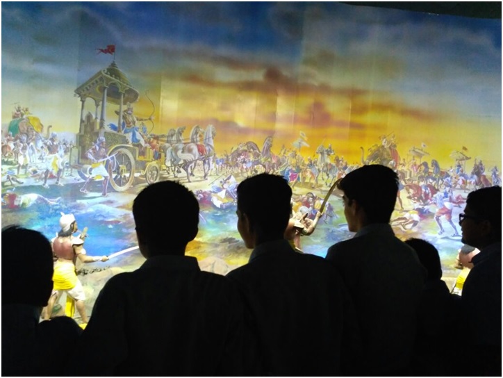 Seeing the science related objects and Mahabharata period scenes in Panorama, the students got to know about the traditional Indian culture, costumes, causes and consequences of the war of Mahabharata, while seeing the Harappan objects and different types of handicrafts and paintings in Krishna Museum, they got information about them.
